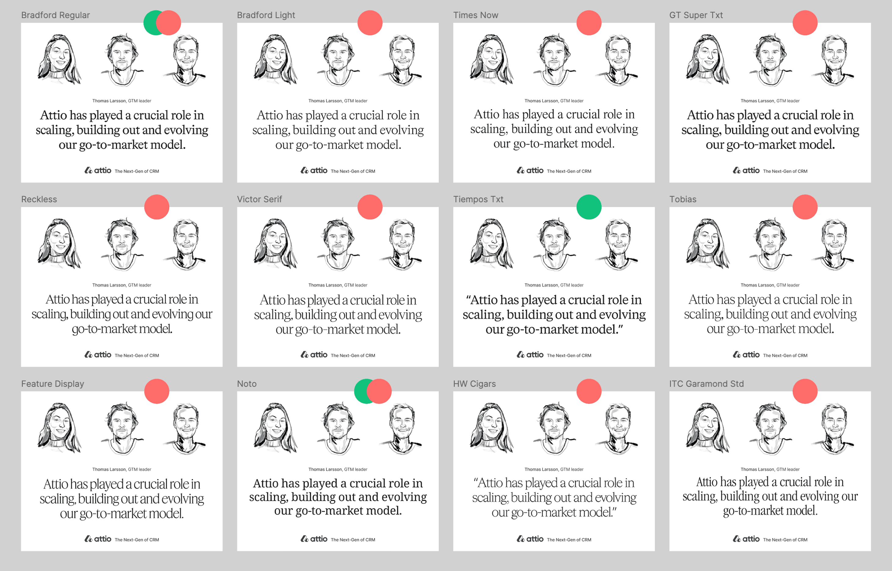 Many of the decisions were made with longevity in mind. The portrait style, Tiempos, and the overall approach carried into Attio’s wider brand refresh and showed up across the website and later campaigns.